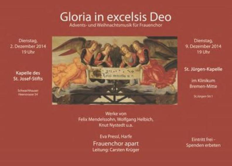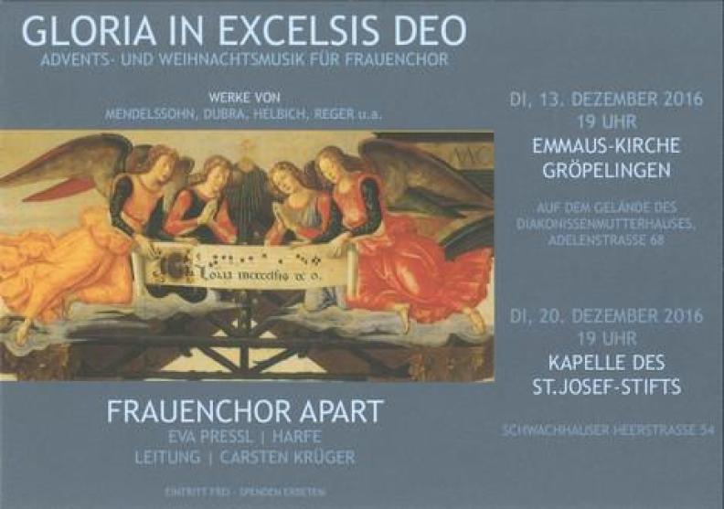 B. Britten: A ceremony of carols und Musik zum Weihnachtsfestkreis von Nystedt, Vittoria, Gluck, Rheinberger, Reger, Verdi, Distler u.a.